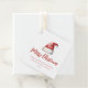 Festive watercolor Santa hat, holiday favour tags. Features, red typography with coordinating stripe pattern backing.
