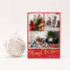 Festive Script Red 3 Photo Merry Christmas Gold Foil Holiday Card