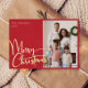 Festive Script Red Photo Merry Christmas Gold Foil Holiday Card