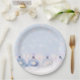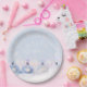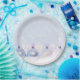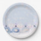 Paper plates with a magical Christmas design. Christmas tree decorations sitting together on some white snow. The background has a white bokeh (blurred lights) pattern with falling snowflakes. Perfectly captures the wonder and magic of Christmas.