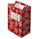 A pretty festive snowflake and star design pattern with a deep red background. A Pretty Christmas gift bag for family friends xmas holiday gifts. All text can be amended as needed. Customise by changing the title to happy holidays or anything else then personalise with a name.Makes a lovely unique gift bag for those special gifts at christmas time.
