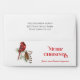 This Christmas envelope exudes festive charm with its richly illustrated liner, showcasing a vibrant collage of holiday motifs. A red cardinal takes center stage among pinecones, candy canes, dried orange slices, star anise, and gingerbread cookies, all nestled within sprigs of holly and poinsettia blooms. The palette blends traditional reds, greens, and warm browns, evoking cozy seasonal nostalgia. The overall design feels both elegant and playful—perfectly capturing the warmth and whimsy of a heartfelt holiday greeting. Personalize with your return address on the back flap