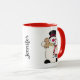 Add a touch of Whimsy and Fun to your Mornings with this Adorable Snowman Mug! This Charming Christmas Mug features a Snowman that is too Cute! He is holding a Santa Mug that is full to the brim with whipped cream. He is also holding a Gingerbread Man Cookie. You can easily Personalise this Snowman Mug by adding Your Own Name! Personalise this Festive Christmas Mug to your Hearts content!