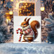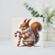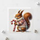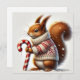 Celebrate the season with this delightful holiday card featuring a squirrel in a cozy knitted sweater holding a striped candy cane. A whimsical and heartwarming design for your holiday greetings. Add your personalized touch.