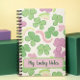 Add a whimsical touch to your St. Patrick’s Day celebrations with this adorable custom notebook! The seamless pattern features light, mint green shamrocks with soft shading, paired with pastel pink and green abstract rainbows, all set against a crisp white background. It’s playful, fresh, and perfect for channeling those lucky vibes. Add your name or a custom message to make it uniquely yours! Whether you’re using it for journalling, planning, or doodling, this notebook is a festive and fun way to celebrate the holiday in style.