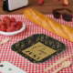 Happy New Year! Celebration paper plates for a New Year’s Eve party, in black with gold streamers and confetti. The background colour is easy to customise so the plates can be used for any type of celebration. Square or round shapes come in two sizes.