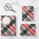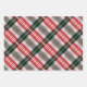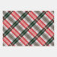 Festive Stylish Candy Cane Red Green Plaid Pattern Wrapping Paper Sheet