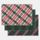 Stylish and festive wrapping paper sheets (set of three) featuring our stylish plaid pattern designs. Set contains one candy cane inspired plaid pattern with grey, red, and green. One green plaid pattern and one red, navy, and green plaid pattern design. Perfect wrapping paper set for plaid lovers.