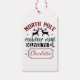 This vibrant Christmas Gift tag features a playful illustration of two reindeer and a whimsical “North Pole” inscription, perfect for igniting holiday spirits. A designated space for a name adds a personal touch, making it a delightful gift.