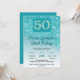 Festive Teal Blue Glitter 50th Birthday Invitation