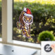 Festive Tiger in a Santa Hat Window Cling
