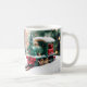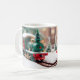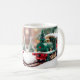 Celebrate the holiday season with this delightful mug featuring a charming toy train design. The green train with red wheels and snow-topped details is set against a backdrop of a beautifully decorated Christmas tree and twinkling lights. Perfect for enjoying your favourite hot beverage, this mug brings the magic and joy of Christmas to your daily routine.