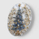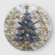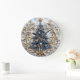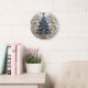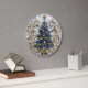 A beautifully crafted clock captures the essence of Christmas, featuring a festive tree adorned with blue and gold ornaments.