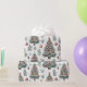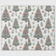 Delightful wrapping paper showcases beautifully decorated Christmas trees adorned with ornaments, berries, and leaves, creating a joyful holiday atmosphere perfect for gift-giving.