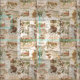 Festive and unique seamless collage featuring vintage Christmas ephemera, including holly, ivy and red-breasted robins with bicycle, lanterns and ornate Christmas greetings on warm ecru background. Each graphic element is from a restored die-cut antique Victorian Christmas card.
