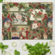 Festive Vintage Christmas Ephemera Collage-Green Tea Towel