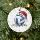 Festive Volleyball Holiday Design with Snowflakes Ceramic Ornament
