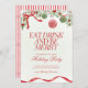 Celebrate the season in style with this festive Eat, Drink & Be Merry holiday party invitation. Featuring elegant watercolor greenery, red bows, and Christmas ornaments, this customisable invite is perfect for holiday gatherings, office parties, and Christmas celebrations with friends and family. Personalise with your event details to create a warm and joyful card that sets the tone for a memorable night. A chic and timeless design for any festive occasion!