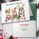 Three watercolor adorable Corgi Dogs wear their Holiday attire and sit with gift packages on the front of this Christmas card. Two of them wear a red and white Santa hat, one wears antlers, and all of them have sweaters or scarfs. The text above says "We're here to wish you...", and the sentiment is continued inside. The text is all customisable, so you may make it say whatever you'd like. Cute! See more cat and dog images and products at Dog Village.