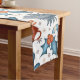This Christmas table runner feature a festive Christmas pattern made of Christmas trees, candy canes, birds, winter greenery and snowflakes for your special holiday celebration.
