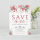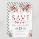 Elegant watercolor red green winter berry forest leaves and branches Save the Date Christmas invitation.