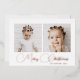 Festive Christmas greeting features a rustic winter deer and berries watercolor holiday pattern on the back, and a simple white front with beautiful real foil script and two photos.
