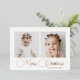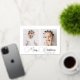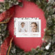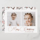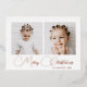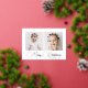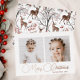 Festive Christmas greeting features a rustic winter deer and berries watercolor holiday pattern on the back, and a simple white front with beautiful real foil script and two photos.