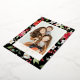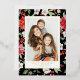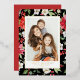 Festive Winter Floral Pattern Black Photo Foil Holiday Card