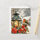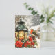 A glowing lantern adorned with holly leaves, delicate roses, and charming bird, all surrounded by gently falling snowflakes.