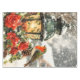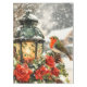 A glowing lantern adorned with holly leaves, delicate roses, and charming bird, all surrounded by gently falling snowflakes.