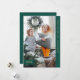 These colourful and modern cards feature a forest green bar along the side of your personal photo, and a small matching banner with the year adds additional style. The gold coloured text says "Merry Christmas", and you can add your family name.