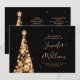 Elegant & Festive Xmas Tree Gold Wedding Program template, featuring party program and menu text, glitter lights Christmas Tree and modern typography script.