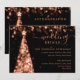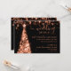 Elegant & Festive Xmas Tree Rose Gold Wedding Details/Information Card template, featuring party address and instructions, glitter lights Christmas Tree and modern typography script.