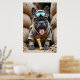He’s not playing—he’s deployed. Corporal Kibble crouches low behind a sandbag wall, decked out in full desert camo with kneepads, a tactical vest, and night-vision goggles perched on his head. In his paw? A rubber bone, held with deadly seriousness. His vest says “FETCH 6,” and his walkie is live with barking commands. His tongue may hang out, but this pup’s ready for action. Perfect for military fans and funny dog art collectors.