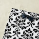Decorative damask surface pattern design in black detail on a white background.