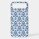 Decorative damask surface pattern design in dark blue detail on a white background.