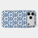 Decorative damask surface pattern design in dark blue detail on a white background.