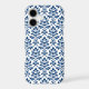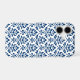 Decorative damask surface pattern design in dark blue detail on a white background.