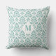 Decorative damask in a vintage influenced pattern, in teal colour detail on a background colour of your choice. With letter centre to personalise on the front and pattern on the back.
