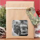 Photo sticker of a vintage old small FIAT 500 car in a street in a city in Italy in stylish black and white.