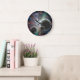 Great for outer space lovers or geeks. A colourful fictional outer space scene wall clock. Features planets and flares. You can add text to customise this design. To add text the same orange colour as the numbers, use hex code d58270.