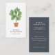 Elegant vertical business cards for house sitters, real estate agents, realtors, decorators or home stagers feature a watercolor fiddle leaf fig houseplant illustration with your name or business name beneath. Add your full contact details to the reverse side in white on a contrasting smoky blue background.