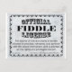 Official Fiddle License. There are many activities involving various equipment, such as operating an automobile, aeroplane, etc., that require specialised training and licenses. Making music is something that usually requires training: lessons, practice, and rehearsals. Shouldn't it be required of the prospective musicians that they receive a license to operate the equipment, i.e., their musical instrument?