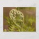 Macro photo of a fiddlehead fern unfolding in the shape of a heart.