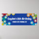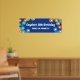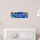 Personalise this banner for a fidget spinner theme party. Many elements of this banner can be customised. The background colour is blue, however you change that by clicking on the Customise button. Each fidget spinner can be moved around, made smaller or larger. Click on the Customise button to go into Edit Mode.