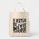 Text reads: Hustle, Hit And Never Quit, with a crossed field hockey sticks icon.