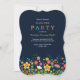 A field of perky flowers create the bottom border in this colourful invitation. (<a href="https://www.freepik.com/free-vector/colourful-floral-background-in-flat-style_2010590.htm">Designed by Freepik</a>). <br/><br/>The card is easy to customise with your wording, font, font colour, paper shape options and choice of six paper types.<br/><br/>Not exactly what you're looking for? All our products can be custom designed to meet your needs at no extra charge.<br/><br/>Simply contact us at heartfelthelper@gmail.com.<br/><br/>Coordinating products available: Just ask us!