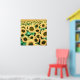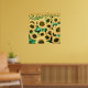 Print in a field of golden yellow sunflowers with chocolate brown centres and green leaves