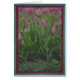 Colour photo of a field of pink tulips. 5"x7". Digitally transformed. Decorative border. Blank.