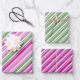 A classic candy cane stripe wrapping paper featuring a rich deep violet pink stripe, a lavender purple stripe, and a field green stripe with white candy cane stripes.